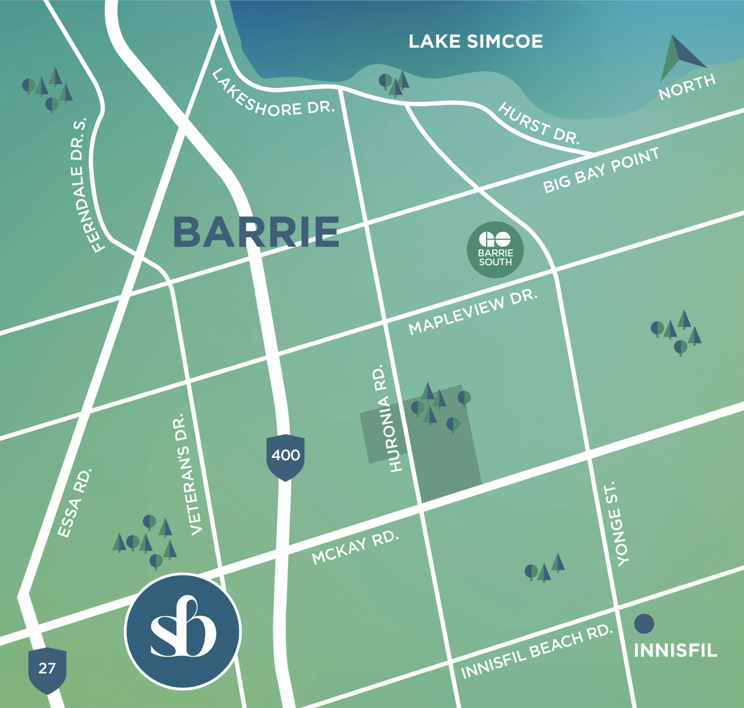 In South Barrie connectivity shines, a vital element anchoring the next phase of your life. With direct access to the future Highway 400 McKay Road exit, and Highway 27 and the Barrie South GO Station being just minutes away, you are never far from where you need to go.